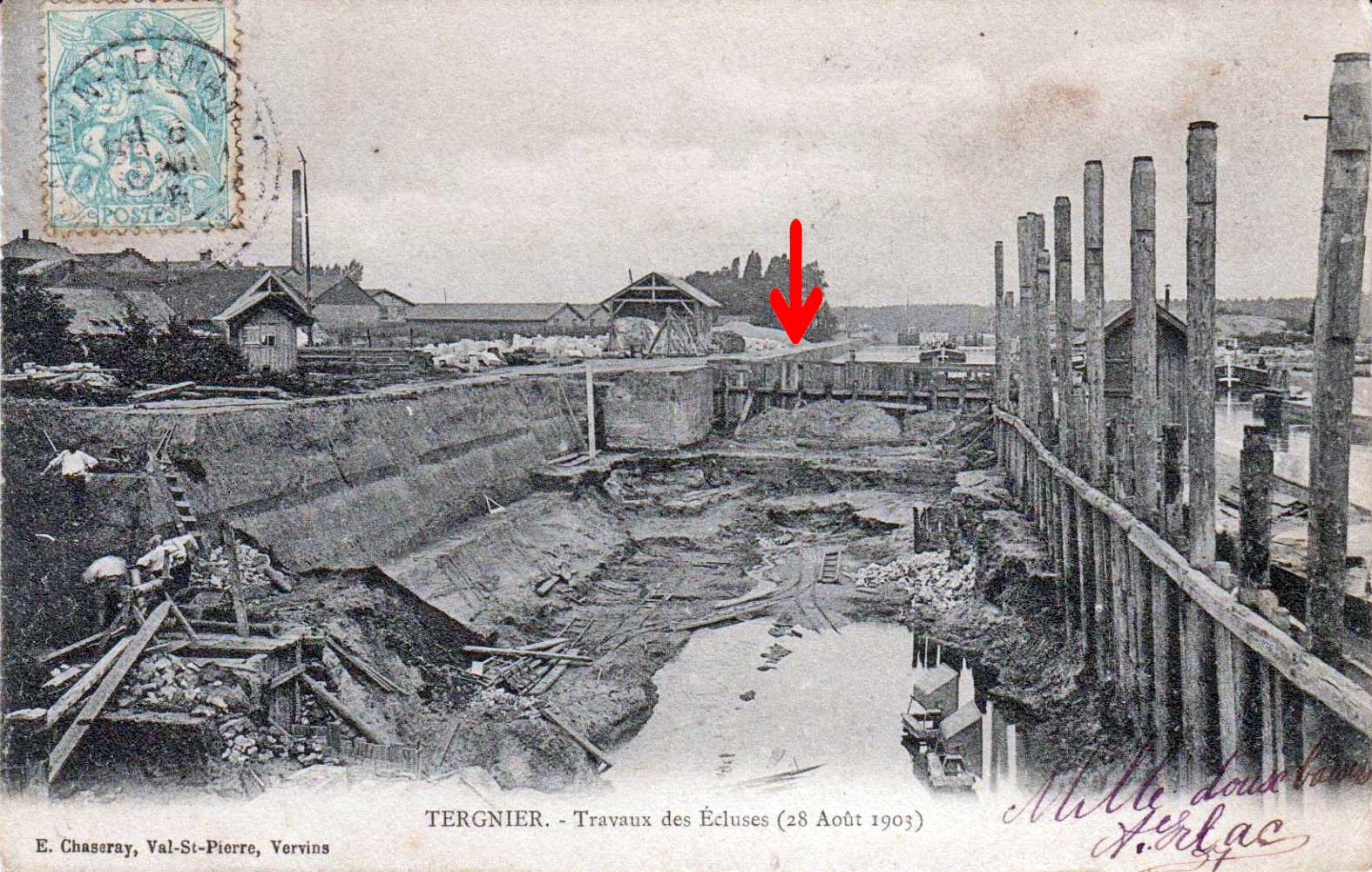 du canal n'y figure pas. Mais elle date après 1903, l'écluse est double.