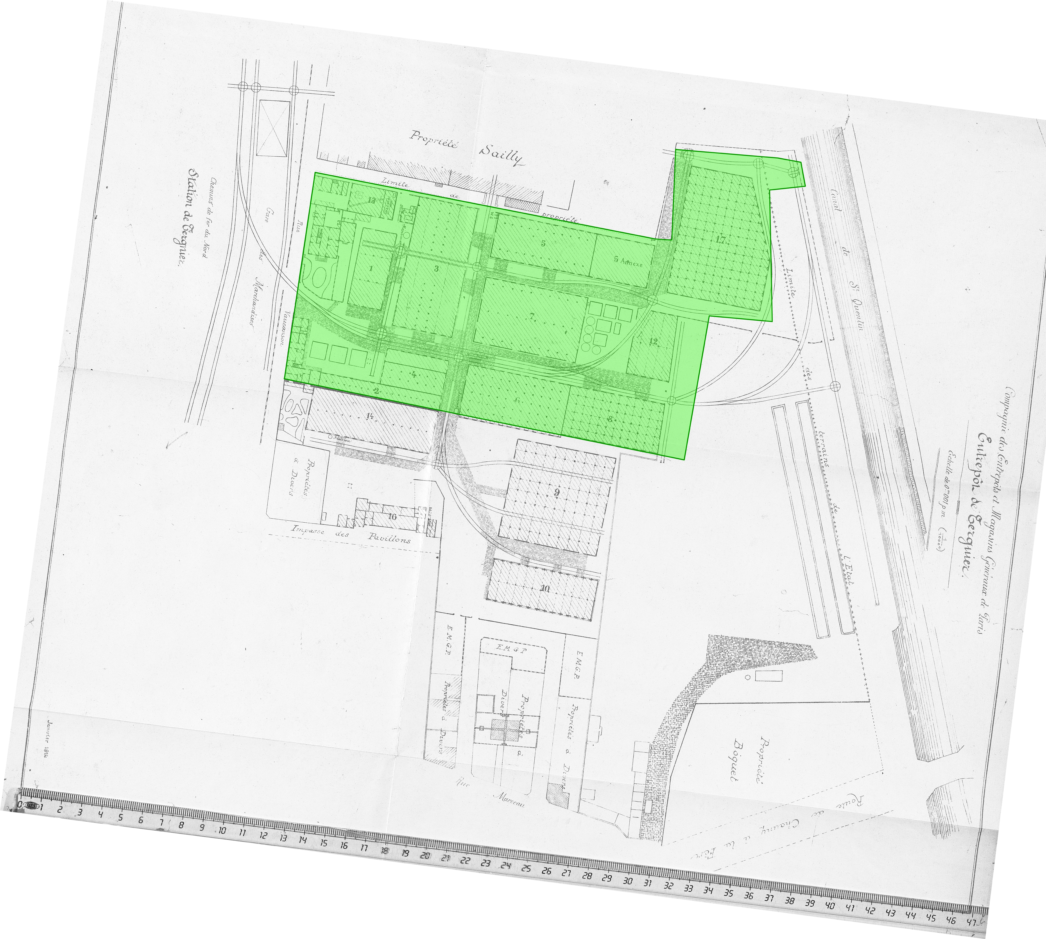 Plan des Entrepôts et Magasins Généraux de Paris à Tergnier