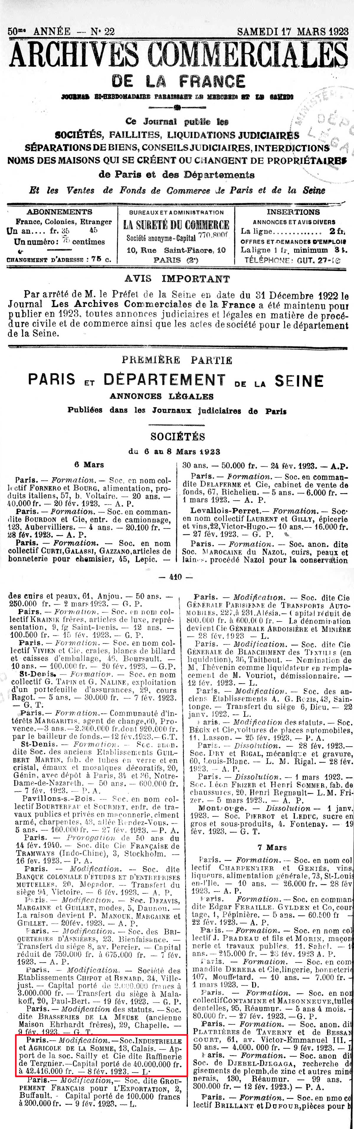 des terrains des Magasins Généraux est utilisée pour les besoins de la sucrerie. Les
