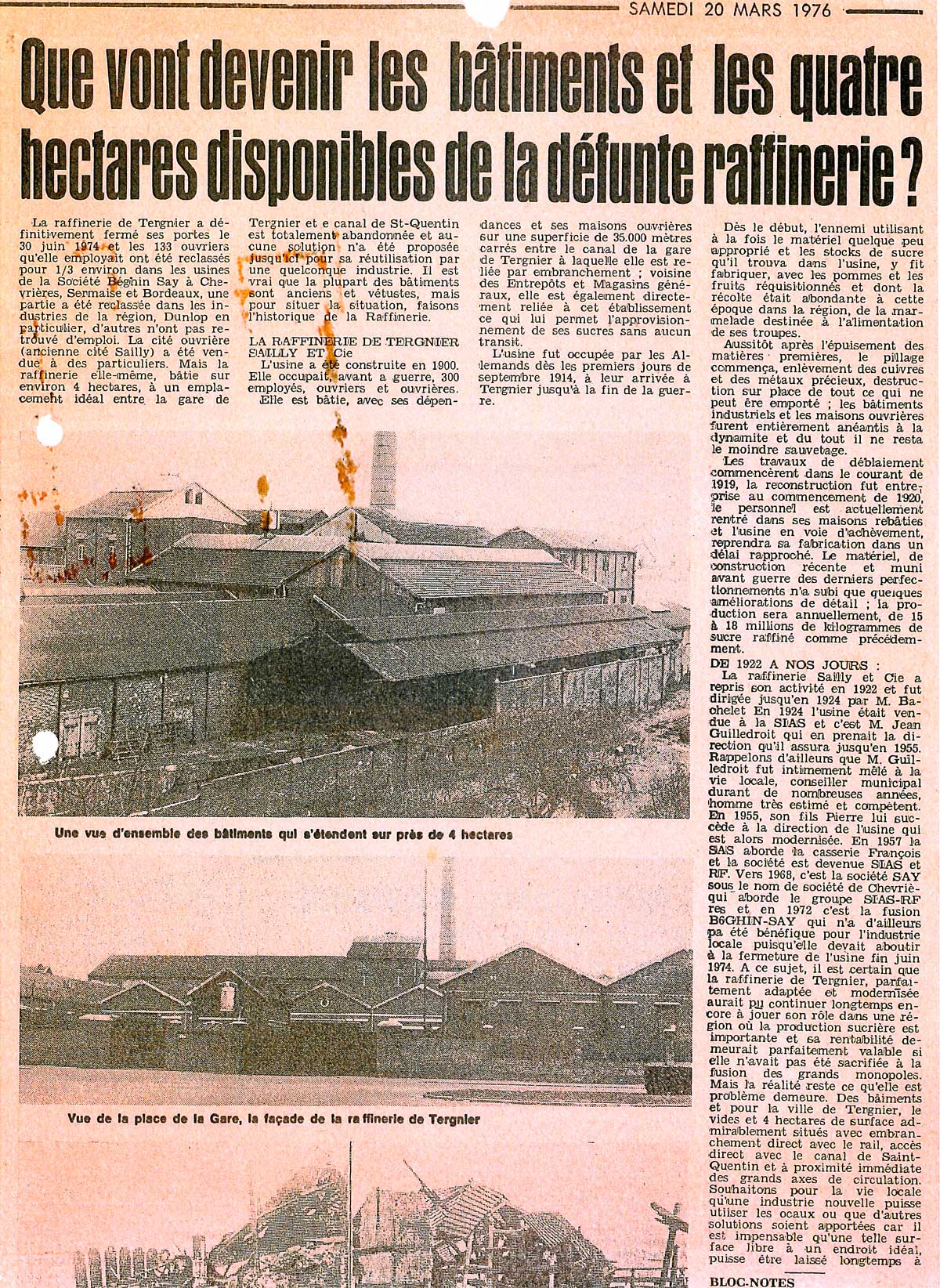 - La sucrerie Sailly dénommée aussi la sucrerie de Tergnier après la guerre 14-18, a pu